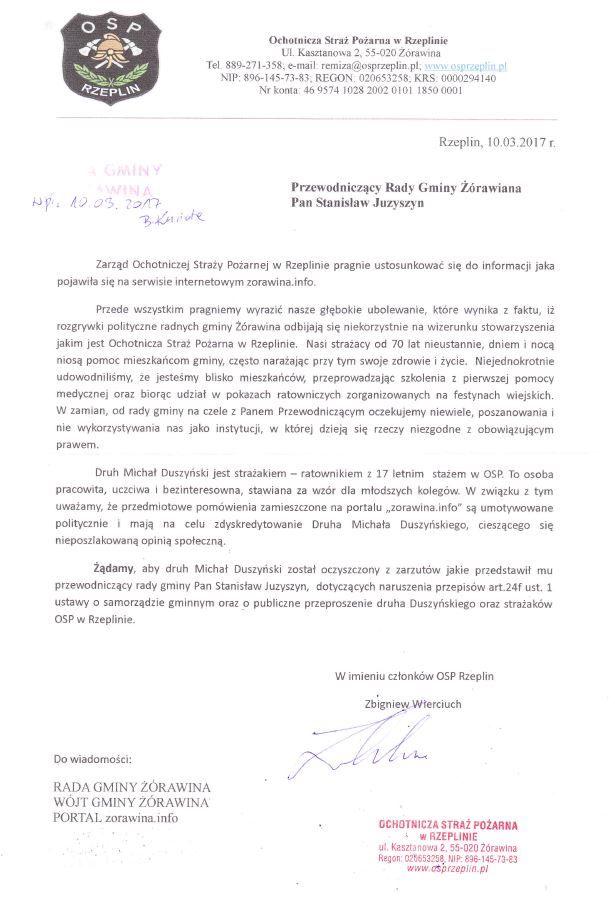 Odpowiedź w sprawie pomówienia druha Michała Duszyńskiego 13/03/2017 Odpowiedź w sprawie pomówienia druha Michała Duszyńskiego [ Wersja PDF ]