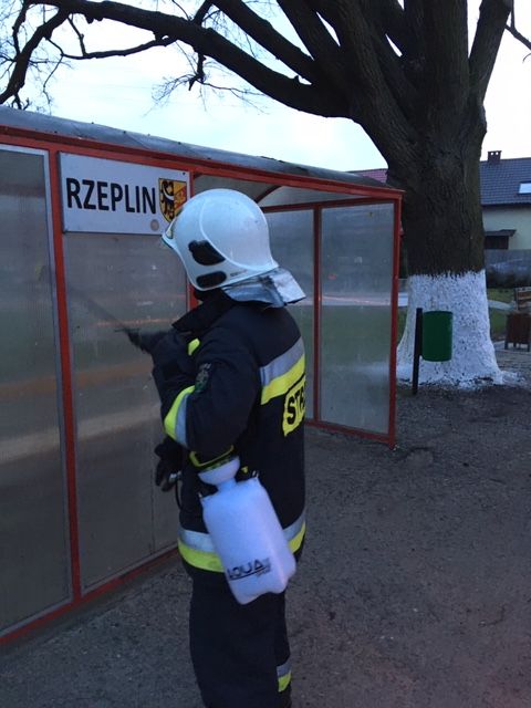 W dniu 26 marca w godzinach popołudniowych, 3-osobowy zastęp naszych strażaków na polecenie Pana Wójta prowadził czynności związane z dezynfekcją przystanków autobusowych na terenie naszej gminy. Dezynfekcję przeprowadziliśmy min. w miejscowościach : Wilczków, Galowice, Żórawina Oś., Szukalice oraz Rzeplin.