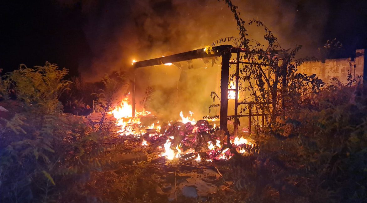 Po dotarciu na miejsce zdarzenia i przeprowadzeniu rozpoznania KDR ustalił, że oprócz palących się śmieci: opon, części samochodowych i kabli ogniem objęty jest kontener magazynowy. W związku z powyższym dowodzący poprosił dyspozytora o zadysponowanie dodatkowego zastępu do pomocy. Pożarem objęty był teren na powierzchni ok. 50 m2. Do zadań zastępów należało zabezpieczenie miejsca zdarzenia, podanie dwóch prądów wody w natarciu, przeszukanie i dogaszenie pogorzeliska. Na miejsce została zadysponowana Policja, która będzie wyjaśniała przyczynę pożaru.