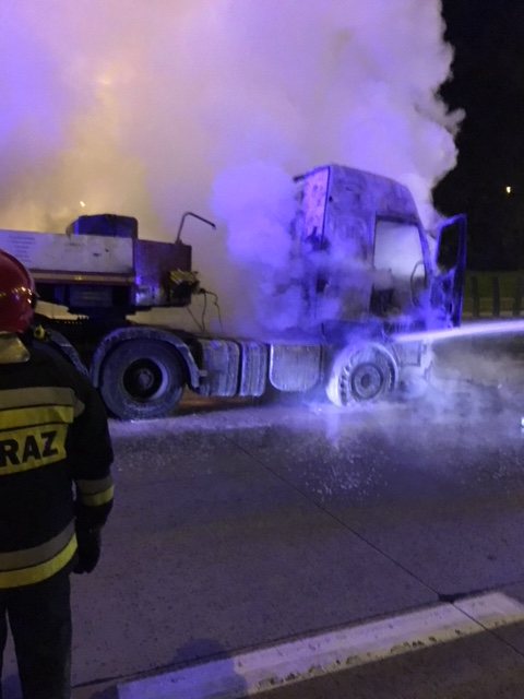 18 października 2017, o godzinie 02:07 zostaliśmy powiadomieni o pożarze samochodu ciężarowego na 153 km autostrady A-4 (węzeł Bielański) w kierunku Legnicy. Po dotarciu na miejsce, wspólnie z sekcją JRG4 przystąpiliśmy do działań gaśniczych. Spaleniu uległ ciągnik siodłowy. Autostrada w kierunku Legnicy była całkowicie wyłączona z ruchu do czasu usunięcia wraku z jezdni. Do bazy powróciliśmy o godzinie 3:20.