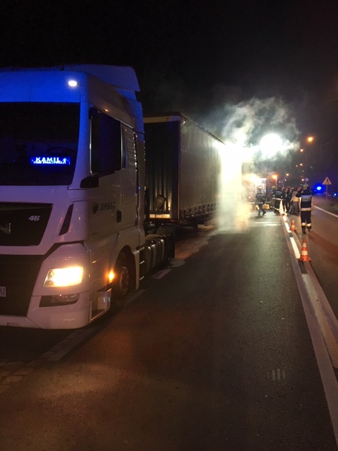 W dniu 07 listopada o godzinie 19:35, nasza jednostka została zadysponowana do pożaru naczepy samochodu ciężarowego w miejscowości Turów. Kiedy dotarliśmy na miejsce zdarzenia, działania gaśnicze prowadzili już ochotnicy z Żórawiny podając jeden prąd piany gaśniczej. Nasi strażacy rozwinęli drugą linię gaśniczą czekając na rozwój wydarzeń. Na szczęście źródło ognia zostało szybko zlokalizowane i ugaszone dzięki sprawnej akcji strażaków. Spaleniu uległa niewielka część podwozia, natomiast cały ładunek ( silniki ) zostały uratowane. Na czas prowadzonych działań droga W-395 w miejscowości Turów była całkowicie zablokowana. Do koszar powróciliśmy o godzinie 20:30.