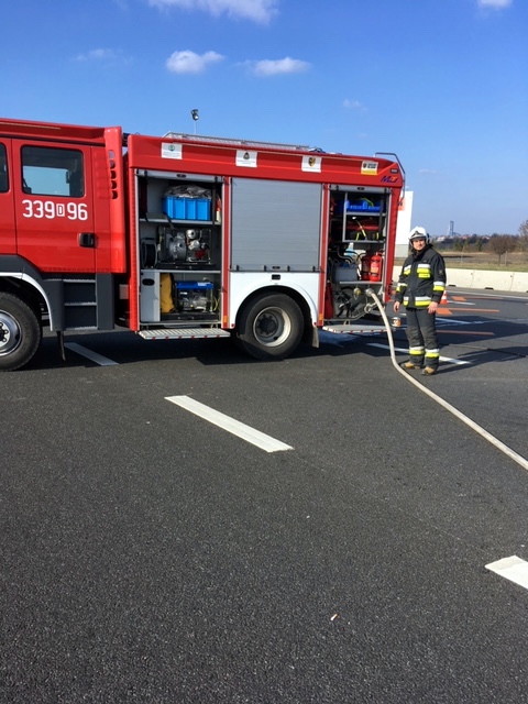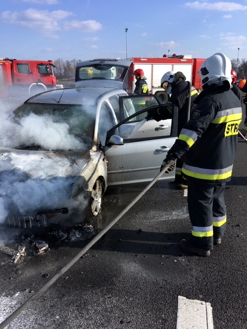 W dniu 08 marca o godzinie 14:07 nasza jednostka została zadysponowana na 156 km autostrady A-4 ( rejon punktu poboru opłat w Karwianach ) do pożaru samochodu osobowego.