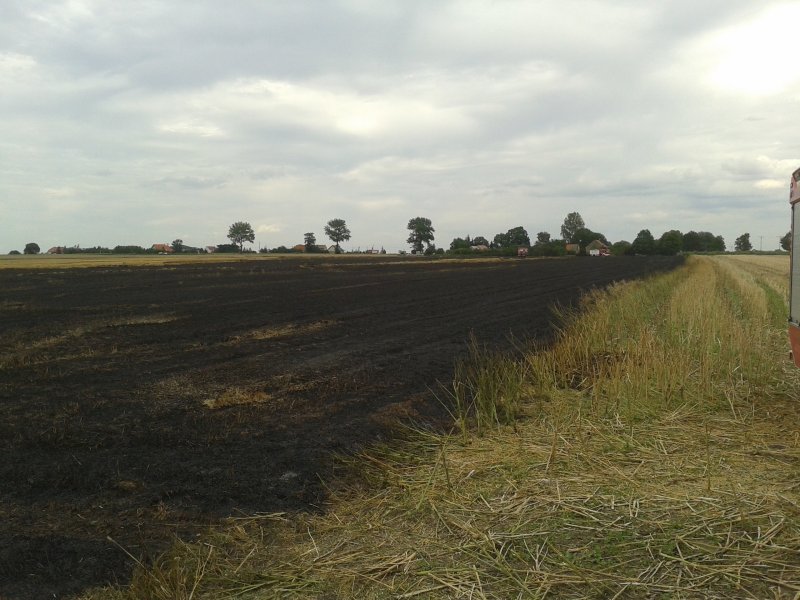W chwili przybycia pierwszego zastępu z OSP Żórawina, zastano pożar pszenicy na pniu oraz ścierniska na obszarze około 2h. W trakcie dojazdu naszej jednostki, porywisty zachodni wiatr powodował, że ogień zaczął rozprzestrzeniać się w kierunku zabudowań mieszkalnych. Na polu znajdował się kombajn zbożowy oraz ciągnik z pługiem, który próbował stworzyć pas przeciwpożarowy. Na miejsce zdarzenia systematycznie przybywały dodatkowe siły i środki. Podano łącznie 8 prądów wody. Ostatecznie spaleniu uległa powierzchnia ok 4 ha, w tym 1,5 ha pszenicy na pniu. Działania gaśnicze trwały ponad godzinę czasu.