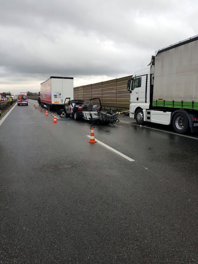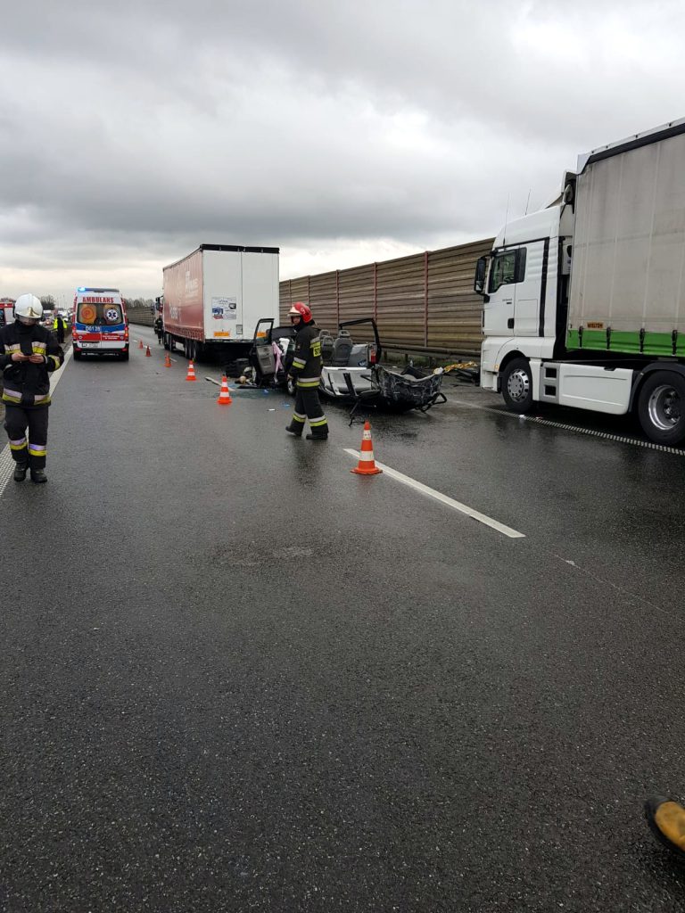 W dniu 12 marca br. SKK M we Wrocławiu zadysponowało nasz zastęp na 155 km autostrady A4 w kierunku Katowic, gdzie samochód osobowy wjechał w naczepę ciągnika siodłowego.