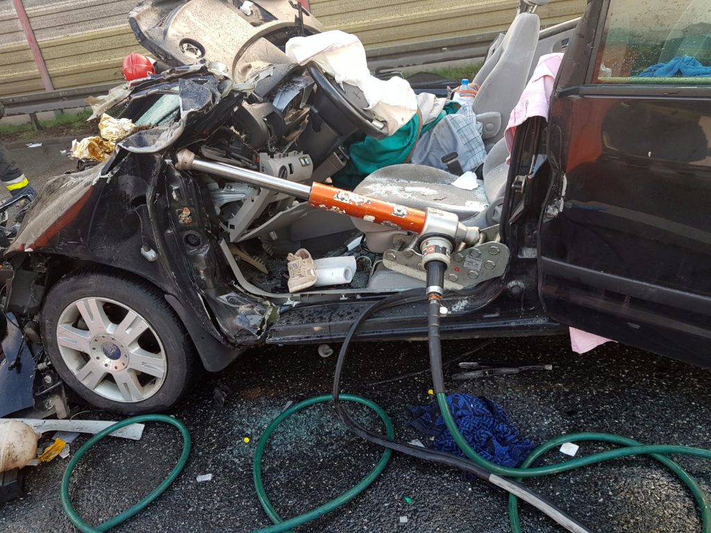 Zastępy PSP i OSP zabezpieczyły miejsce zdarzenia; zablokowały ruch na autostradzie, aby umożliwić lądowanie LPR-u. Następnie rota medyczna przystąpiła do udzielenia KPP poszkodowanej. Po ok. minucie od przyjazdu zastępów PSP na miejscu pojawił się ZRM i przejął działania medyczne od roty medycznej, która wspomagała ratowników medycznych w ich działaniach. W pierwszej fazie usunięto drzwi od strony kierowcy, następnie wykonano nacięcie progu i odsunięto częściowo kolumnę kierowniczą od nóg poszkodowanej uwalniając je. Następnie wykonano to samo z drugiej strony, aby zrobić jeszcze więcej miejsca na nogi poszkodowanej a jednocześnie usunięto dach pojazdu razem z klapą tylną co umożliwiło ewakuowanie poszkodowanej na desce ortopedycznej przez tył pojazdu. Poszkodowana została zabrana przez ZRM w towarzystwie lekarza z LPR do szpitala wojskowego przy ul. Weigla.