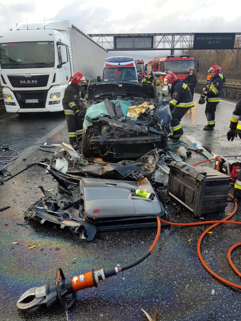 Groźny wypadek na 155 km autostrady A4 w kierunku Katowic