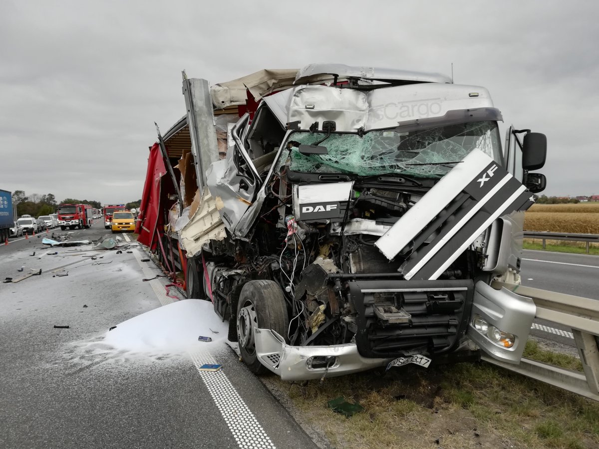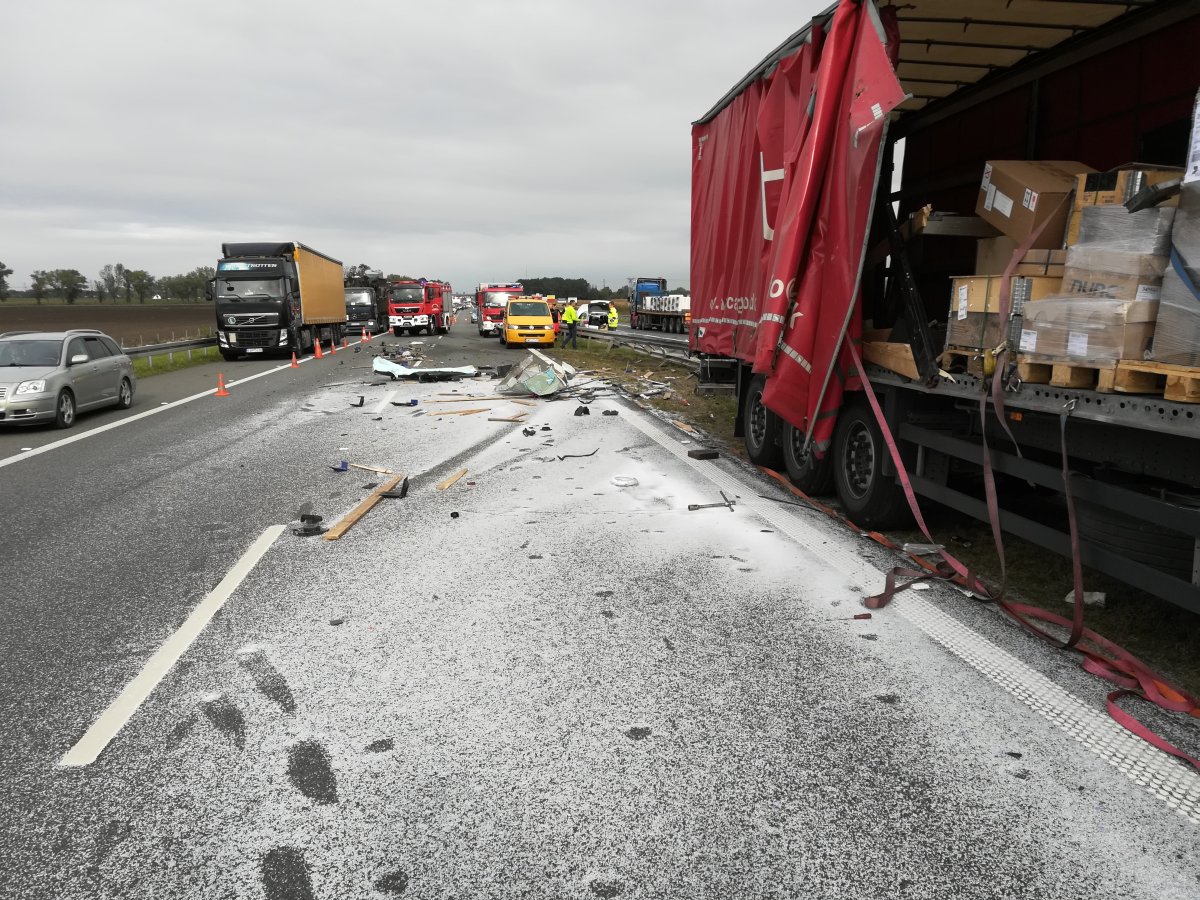 Kolizja pojazdów ciężarowych na 161 km autostrady A-4