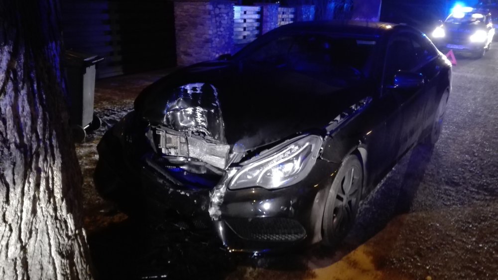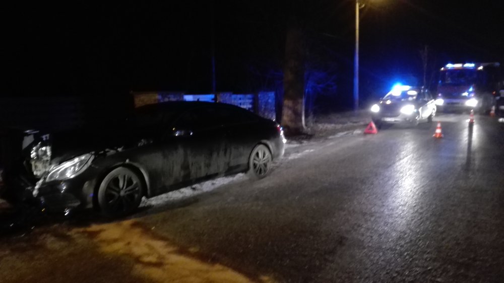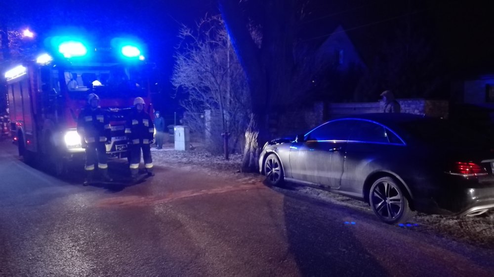Po chwili sześcioosobowy zastęp był już na miejscu. Okazało się, że na łuku kierowca mercedesa zjechał z drogi i uderzył czołowo w przydrożne drzewo. Uczestnik zdarzenia odmówił przyjęcia pomocy medycznej. Nasze działania oparły się na zabezpieczeniu miejsca zdarzenia, odłączeniu źródła napięcia w pojeździe oraz neutralizacji płynów eksploatacyjnych. Na miejsce dotarł również zastęp 309[D]21 z JRG-9 oraz patrol policji. Po zabraniu auta przez pomoc drogową wróciliśmy do bazy.