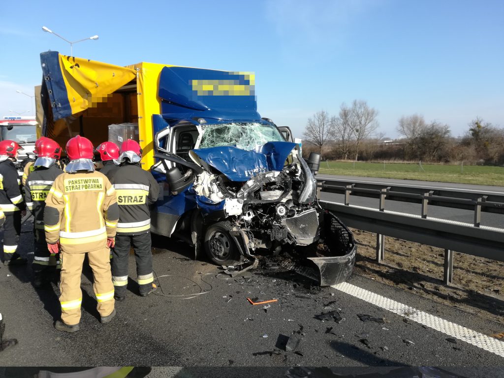 W dniu dzisiejszym, tj. 10.03.2020 r. przed godz. 09:00 zostaliśmy zadysponowani przez SK KM we Wrocławiu do wypadku samochodu dostawczego z ciągnikiem siodłowym, do którego doszło na 155 km autostrady A4 w kierunku Wałbrzycha.