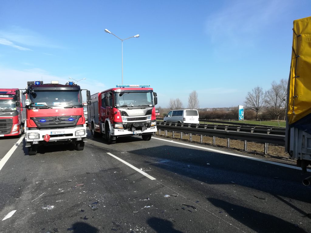 Po dojeździe pierwszych zastępów PSP z JRG-4 na miejsce zdarzenia, KDR przekazał meldunek, że osoba poszkodowana została ewakuowana z rozbitego pojazdu przez ratowników medycznych, którzy pierwsi byli na miejscu zdarzenia. Dwa pasy w kierunku bramek poboru opłat w Karwianach są całkowicie nieprzejezdne. KDR ustalił, że kierujący samochodem dostawczym nie zachował zasad bezpiecznej odległości od poprzedzającego go TIR-a i uderzył w tył naczepy. Na miejsce dojechały kolejne SIS w postaci sekcji z JRG-9 i nasz zastęp. Osoba poszkodowana z „dostaw czaka” została zabrana przez ZRM na badania do szpitala. Do koszar wróciliśmy przed godz. 10:00.