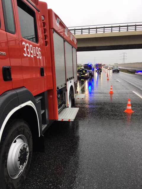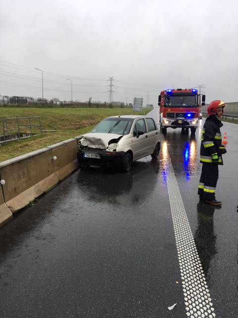 W dniu 23 września o godzinie 13:45, dyspozytor SK KM we Wrocławiu dysponuje nasz zastęp na 163 km autostrady A-4 w kierunku Opola, gdzie doszło do zderzenia dwóch samochodów osobowych. Na miejsce dotarliśmy wspólnie z zastępem OSP Żórawina. Dowódca w trakcie rozpoznania potwierdził zgłoszenie, iż doszło do wypadku VW Golfa z Matizem, wskutek czego poszkodowane zostały trzy osoby. Nasze działania polegały na zabezpieczeniu miejsca zdarzenia, udzieleniu KPP osobom poszkodowanym oraz odłączeniu źródeł napięcia w pojazdach. W trakcie prowadzonych działań ruch w kierunku Opola odbywał się tylko lewym pasem. Po przekazaniu poszkodowanych ekipom pogotowia ratunkowego oraz miejsca zdarzenia policji, zastępy straży pożarnej wróciły do swoich baz.
