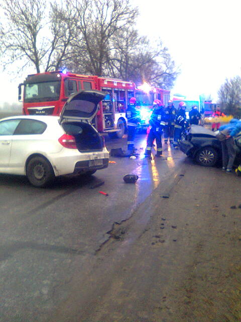 Na miejsce dotarliśmy jako pierwszy podmiot ratowniczy. Dowódca w trakcie rozpoznania stwierdził czołowe zderzenie dwóch samochodów osobowych w pobliżu miejscowości Galowice. W skutek zderzenia poszkodowane zostały trzy osoby w tym kobieta w ciąży. Nasze działania skupiły się głównie na zabezpieczeniu miejsca zdarzenia oraz na udzieleniu KPP wszystkim uczestnikom wypadku. Na czas prowadzonych działań droga była całkowicie zablokowana. Na miejscu zameldowali się również strażacy z JRG-9 oraz druhowie z OSP Żórawina. Osoby poszkodowane zostały przekazane zespołom pogotowia ratunkowego po czym zostały przewiezione do szpitala. Policja bada przyczyny wypadku. Nasz zastęp do koszar powrócił o 9:30.